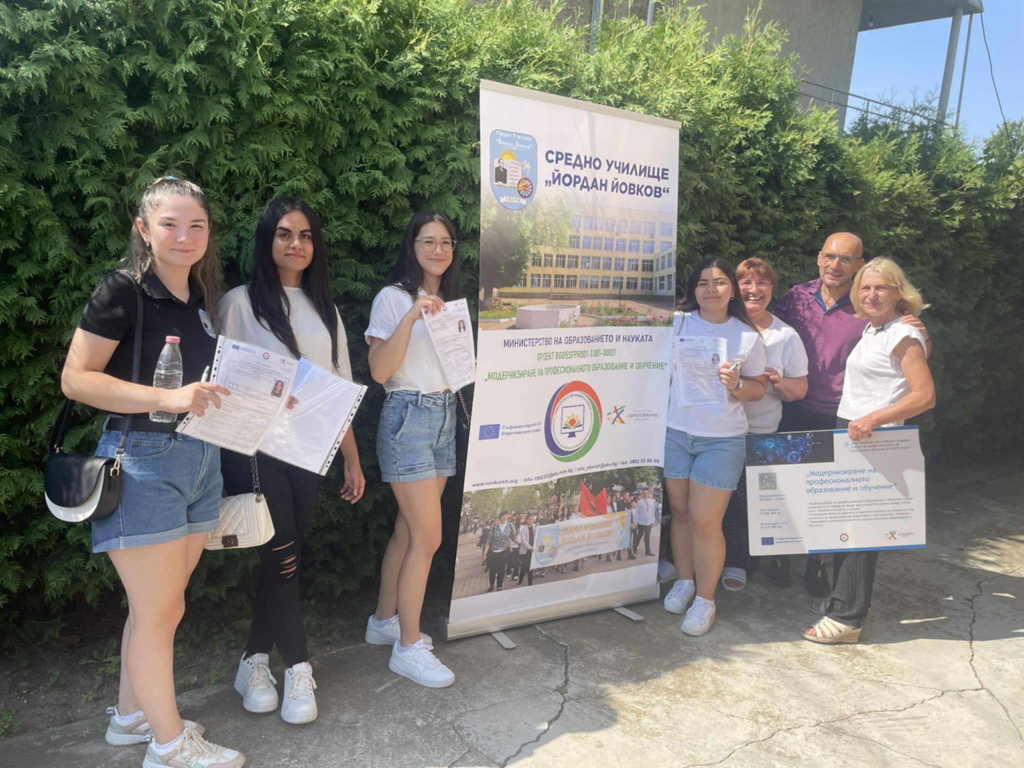 пълнение на Дейност 8: „Обучение чрез работа (ученически практики) в реална работна среда“ по проект BG05SFPR001-3.001-0001 „Модернизиране на професионалното образование и обучение“, ученици от СУ „Йордан Йовков“, обучаващи се по професия „Оперативен счетоводител“, преминаха успешно допълнителна практика в реална работна среда общо 240 часа в счетоводни фирми, която приключи на 17.07.2025 година.
